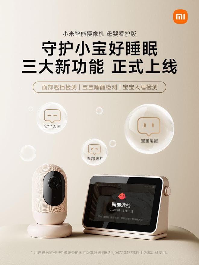 小米智能摄像机“母婴看护版”新增面部遮挡、宝宝睡醒检测等功能