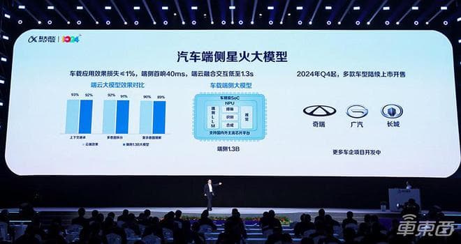 据了解,星火端侧大模型将于今年Q4开始,率先在奇瑞、广汽、长城的车型中陆续搭载上市开售。