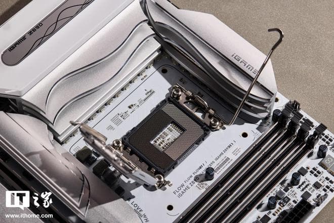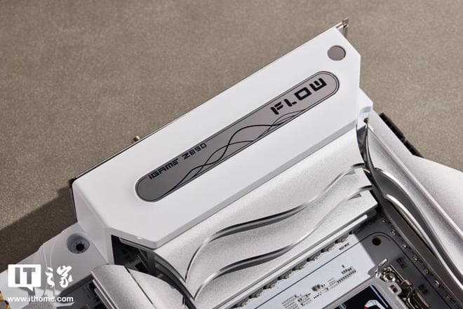 七彩虹 iGAME Z890 FLOW V20 主板延续了上代 FLOW 系列主板的波普艺术美学风格,保持白色 PCB 基调,辅以大面积的银白色装甲,一看就知道出自七彩虹之手。