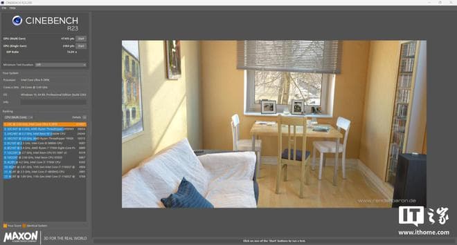 在 CineBench R23 的测试中,酷睿 Ultra 9 285K 跑出了单核 2464 分,多核 41495 分的成绩,单核表现有点厉害。