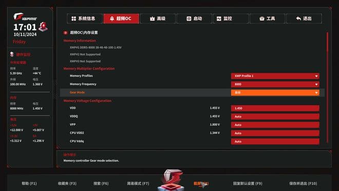 右侧上方是风扇信息监控和自定义快捷入口,下方是老用户熟悉的主板性能模式。顺带一提,七彩虹主板 BIOS 智能超频间歇性跳回默认模式的问题这次终于解决了。