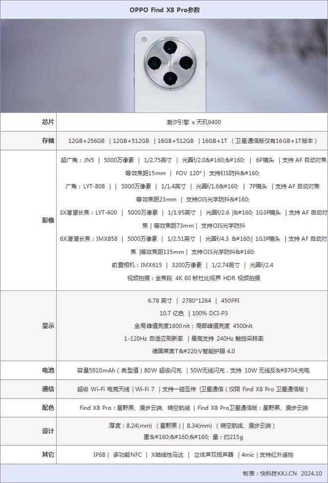 以下是OPPO Find X8 Pro的详细参数: