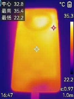 机身背面的最高温度竟然低于40摄氏度,仅有36.2摄氏度。