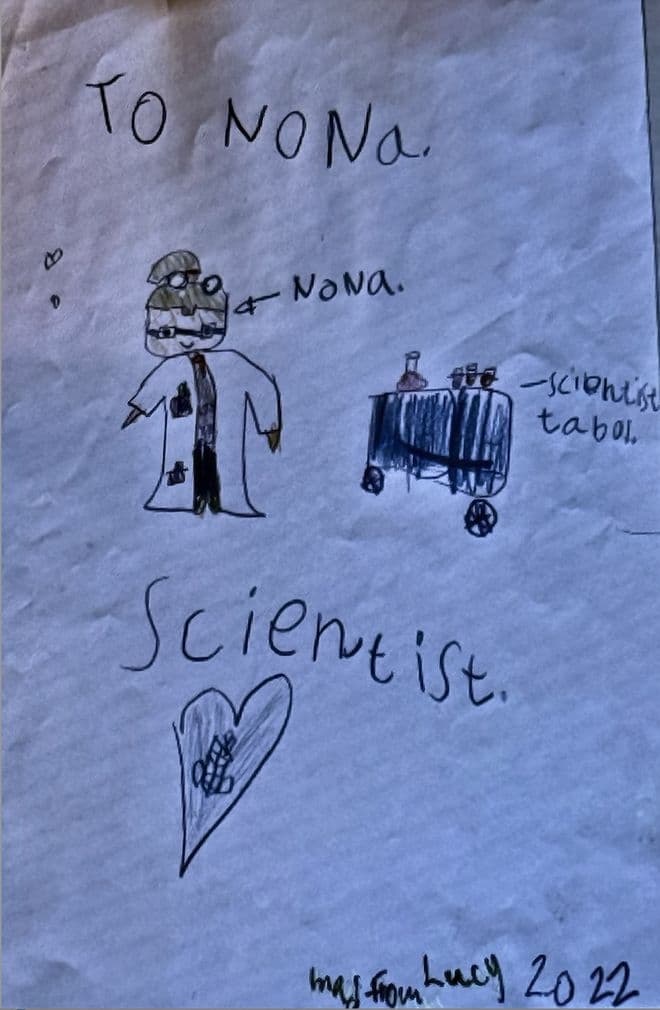 现场,她分享了自己7岁小孙女的一幅画,画的主题是"我眼中的科学家":一管管化学试剂旁,一位扎着马尾、戴着护目镜、身穿白大褂的女科学家正在认真工作,旁边是一颗"科学之心"。罗兹说:"孙女因为我爱上了科学,我对成长中的青年一代充满信心。"
