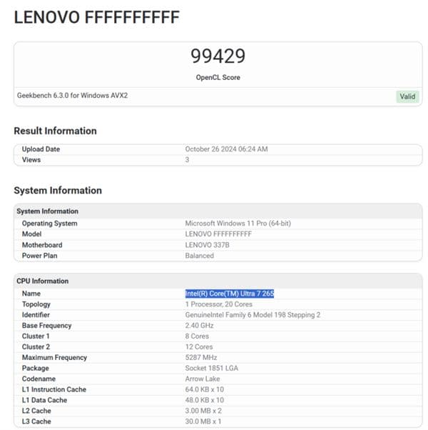 Geekbench的测试显示该处理器采用了平衡的电源配置,但许多评测表明,如果电源计划未设置为高性能,Arrow Lake在Windows系统上的性能会异常下降。