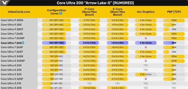Intel酷睿Ultra 7 265曝光:基础频率2.4GHz远低于265K!