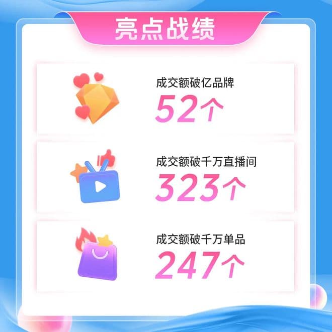 根据抖音电商10月18日发布的战报数据显示,10月8日至17日,抖音电商平台累计有52个品牌成交额破亿元,323个直播间成交额破千万元,247个单品成交额破千万元,直播间商品曝光超2000亿次。