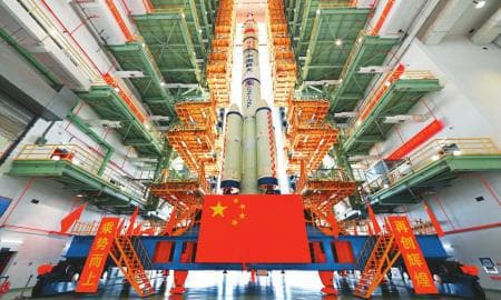10月22日下午,神舟十九号载人飞船与长征二号F遥十九运载火箭组合体开始转运。新华社发