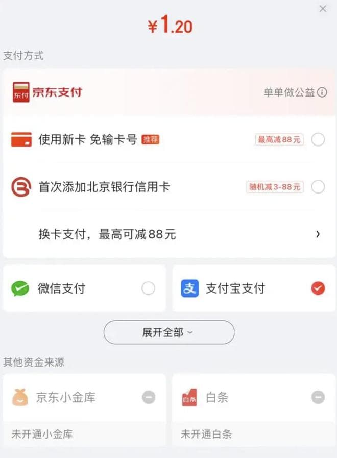 10月30日,京东App开通支付宝付款。目前,部分用户已经能在结账时看到支付宝选项,还可使用余额宝等工具。