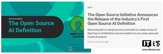 IT之家 10 月 30 日消息,在本月底的 2024 年 ALL THINGS OPEN 大会上,开源组织 Open Source Initiative(OSI)正式发布开源人工智能定义(OSAID)1.0 版本,标志着全球首个开源 AI 标准的诞生。