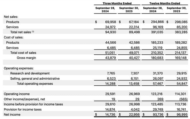 整个财年收入增长约2%,达到3910.4亿美元;净利润为937亿美元,2023财年则为970亿美元。其现金储备目前为1566.5亿美元。