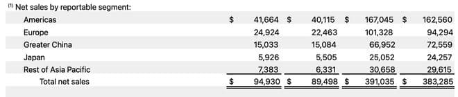 服务业务营收创新高,iPhone在各地区均实现增长