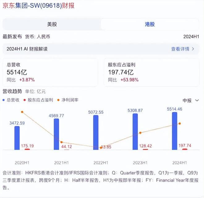 2024年上半年,京东的净利润虽然高达197.74亿元,同比53.98%,但很大程度上都得益于其它净额增长,2024年上半年高达73.57亿元,同比增长82.67%,并不具备持续性。