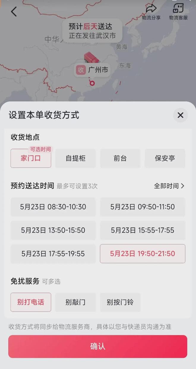 无独有偶,2024年618后,抖音也悄然上线按需配送服务,商品寄出后,消费者可自由选择多种收货方式,甚至还可以预约具体的送货时间,并可选免打扰服务。