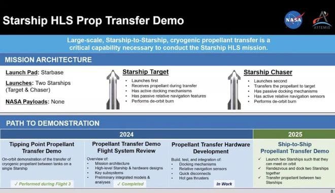 图 | SpaceX 计划于 2025 年进行船对船推进剂转移演示(来源:NASA)