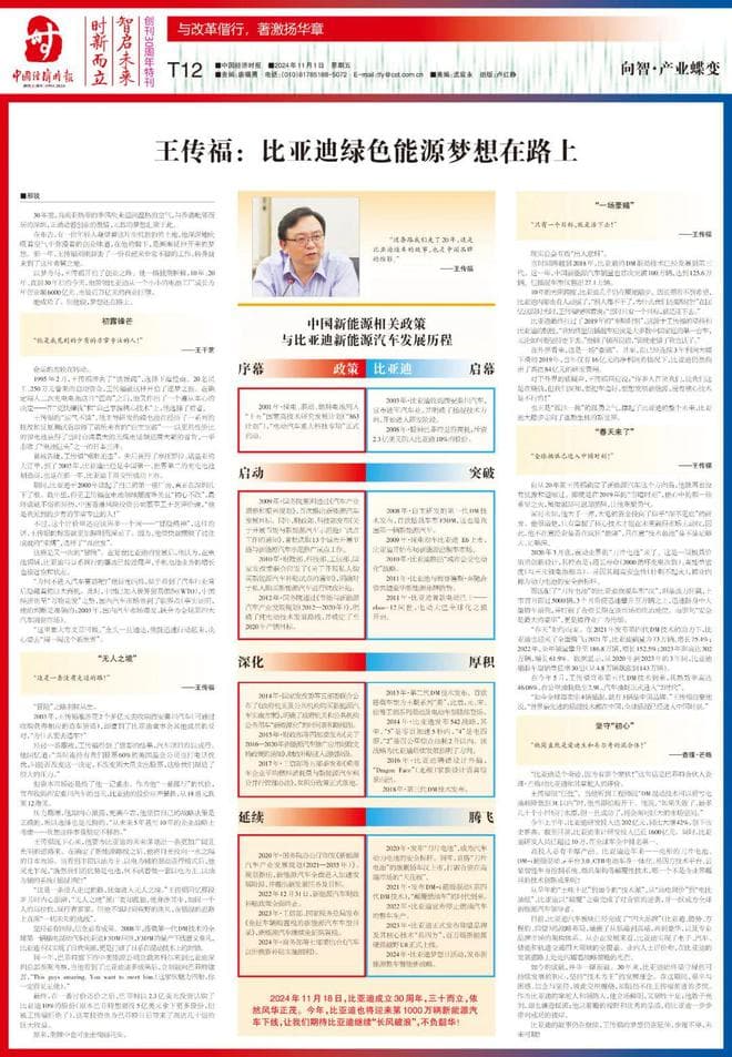 时报创刊30周年特刊丨王传福:比亚迪绿色能源梦想在路上