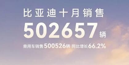 50.3万辆,这是比亚迪最新公布的10月销量数据。
