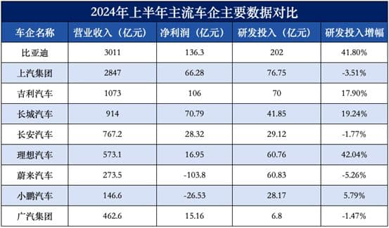 如果将目光放在国内,比亚迪研发投入更是“遥遥领先”。