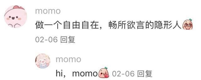 对现在的网友们来说,匿名是一件很有吸引力的事情,就连原本有自己头像昵称的网友,为了匿名,也会手动把自己变身成为momo。