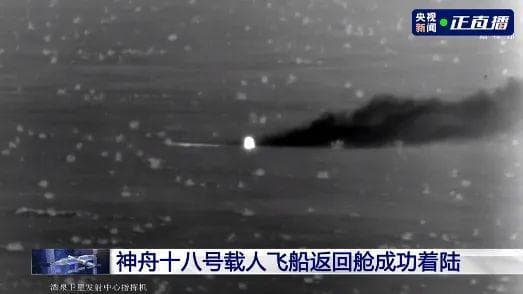 11月4日01时24分,神舟十八号载人飞船返回舱在东风着陆场成功着陆。