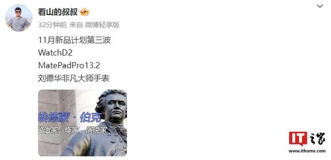 博主@Adak封狼居胥 今日发文透露华为本月新品部分细节信息,IT之家整理如下: