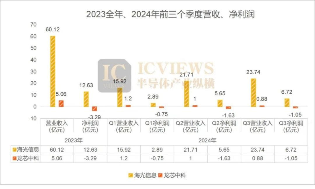相比之下,龙芯的营收表现并没有这么可观。龙芯中科前三季度实现营业收入3.08亿元,同比下降21.94%;归属于上市公司股东的净利润为-3.43亿元。按单季度数据看,第三季度营业收入8819.37万元,较去年同期增长2.05%。归属于上市公司股东的净亏损为1.05亿元。