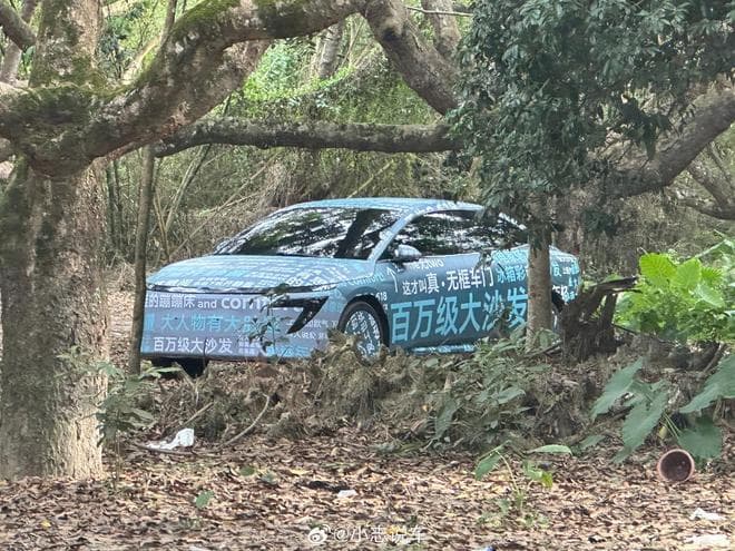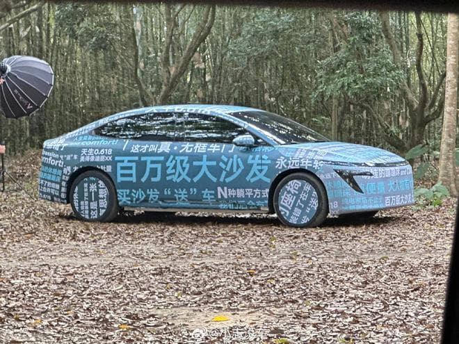 全新纯电轿车谍照曝光:伪装贴纸印“百万级大沙发”