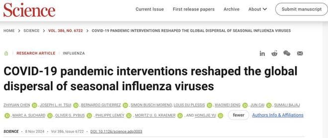 《科学》刊发复旦上医余宏杰团队最新成果:破解季节性流感的全球传播“密码