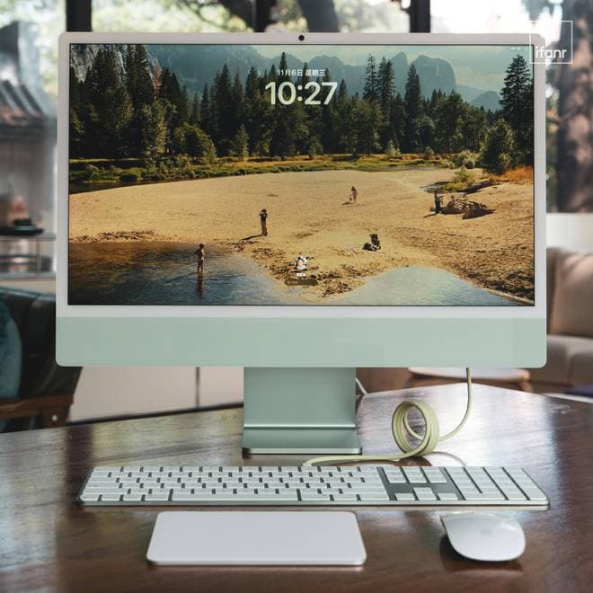 清淡的颜色与 iMac M3 一样,保留在更换了 USB-C 接口的妙控键盘与妙控鼠标上,虽然键鼠与 iMac 不是一个整体,但依然能在复杂的环境中轻松辨认它们的配套身份。