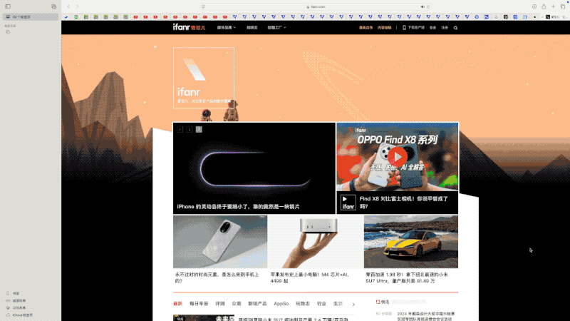 测试中,我打开了 50 个网页,覆盖视频、小游戏、新闻、带动效的官网等类别,在网页全都加载完成后,我快速切换每个网页,并使用其中的动效和小游戏,iMac M4 依旧丝滑,没有任何卡顿出现。