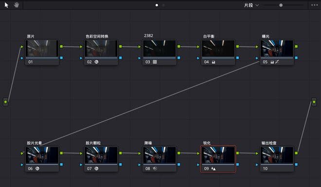 在前面的还原与调色效果中,我可以在预览界面实时查看渲染过的视频,当加入胶片光晕与颗粒效果后,预览帧率下降到每秒 15 帧左右,此时还能勉强对画面进行实时的动态预览。