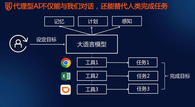 “代理型AI和传统大语言模型最大的区别就是它是能够干事的、它是能够行动的,甚至人类的一些工作不用自己去做了,而是由AI替代。这是我们看到代理型AI的未来。”