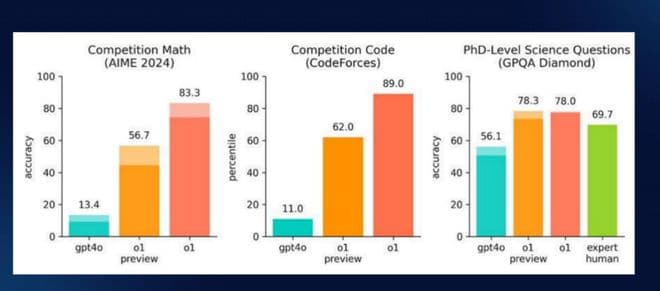 “大语言模型的出现很大程度上改变了这一情况,现在的大语言模型除了掌握语言能力,它还把自己的能力拓展到了计算、推理和代码生成,其中非常重要的是推理能力。OpenAI发布的o1模型,它有慢思考、强推理的特性,它的推理能力在某些特定领域当中是远远超过了GPT4o的。”高挺(Arnold Gao)举例说道。