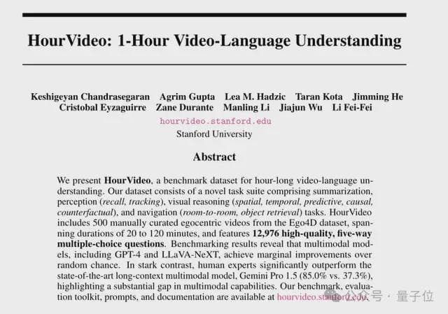 HourVideo项目来自斯坦福李飞飞和吴佳俊团队。