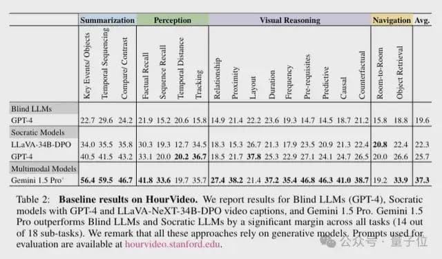 像Gemini 1.5 Pro这样的原生多模态模型,在多模态数据(包括音频、视频、图像和文本)上联合训练,能够处理非常长的上下文长度*((2M +),适合直接对HourVideo进行端到端评估。