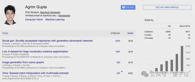 共同一作Agrim Gupta是斯坦福大学计算机科学专业的博士生,2019年秋季入学,同样是李飞飞的学生。