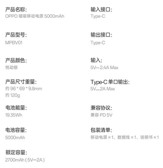 该产品采用 5 系铝合金,具有良好的抗拉强度和韧性,支持苹果无线充,4 格 LED 电量指示灯显示。OPPO Mag 系列产品,在使用磁吸移动电源时,将会自动激活 OPPOMag 使其达到符合条件的最快充电速度。