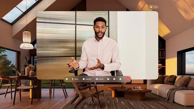 据介绍,该功能允许Vision Pro用户互相之间使用Persona角色进行视频对话,同时也支持以传统形式 1:1 展示等身 2D 视频通话界面。