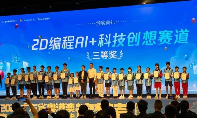 图为“2024广东省粤港澳青少年人工智能追梦营总营嘉年华”颁奖礼。(记者富子梅摄)