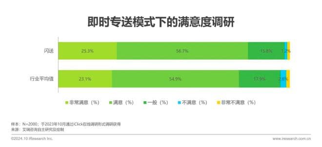 目前闪送的用户口碑跑赢同行业。如尚普咨询的报告显示,2020年至2023年,闪送用户好评率稳步提升,从98.6%提升至99.1%。艾瑞咨询的用户调研也显示,对于闪送“满意”及“非常满意”的用户比例达82.0%,优于行业平均水平。