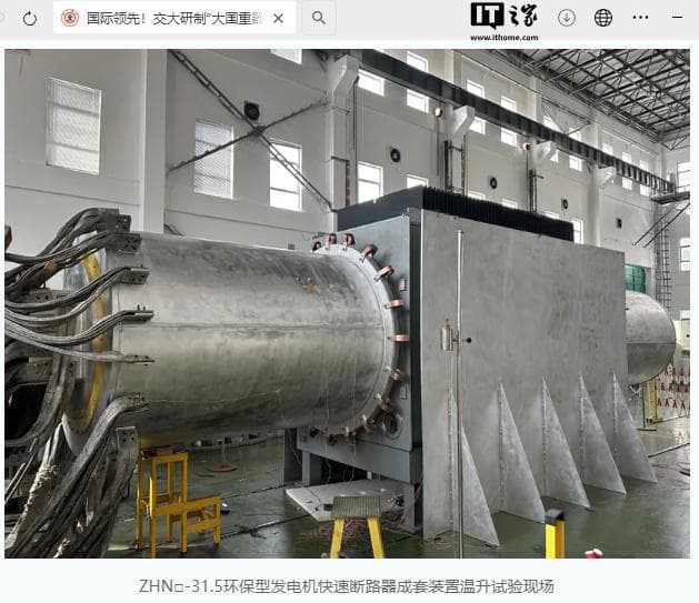 IT之家 11 月 11 日消息,据西安交通大学公众号消息,近日,由中国机械工业联合会组织的国家级科技成果“环保型发电机快速断路器关键技术研究”、新产品“ZHN□-31.5 210kA 环保型发电机快速断路器成套装置”鉴定会在西安召开。