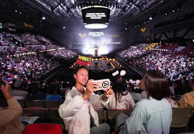2024年10月3日,观众来到首钢园区观看世界乒乓球职业大联盟(WTT)中国大满贯赛。新华社记者 张晨霖 摄