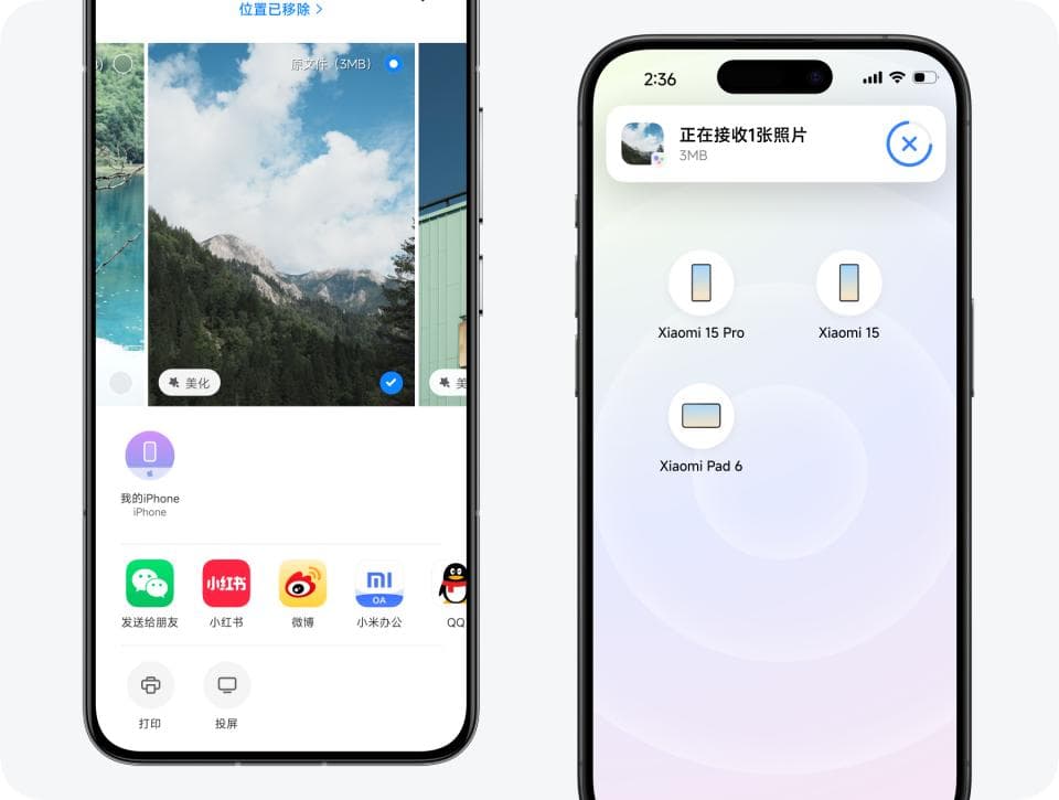 在上个月末的小米新品发布会中,小米手机副总裁金凡提到,澎湃OS 2的核心组件小米HyperConnect已全面支持苹果设备,只要在苹果设备上安装小米互联服务,就能轻松在不同生态内互传文件。