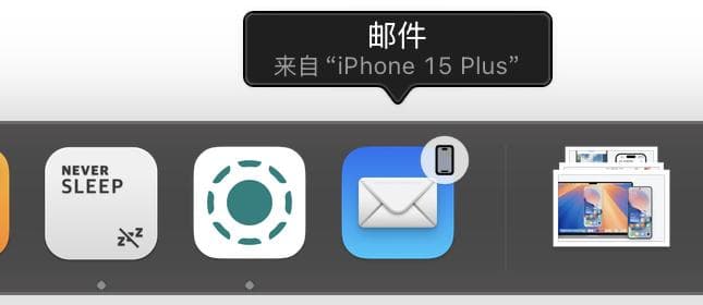 比如Handoff接力,除了可以用Mac接听 iPhone 的电话,同时也会在电脑Dock右下角显示iPhone正在使用的App,点击即可拉起对应App 的 Mac版本,同时保留对应的用户数据。比如写到一半的邮件、看到一半的网页,不需要在投屏的小窗口里使用手机版App;而电脑里打开的App也可以在手机里继续使用。