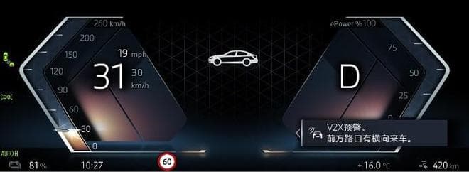 据官方介绍,当用户驾驶宝马 5 系驶入城市快速路,前车距离虽然仍有数百米,驾驶员一瞬间分心踩下加速踏板,紧急制动预警(EBW)功能就会立即响应,提示驾驶者继续加速会有追尾风险,需要紧急制动。即将驶入“丁字”或“十字”路口时,十字路口横向来车碰撞预警(ICW)功能开始发挥作用。在无保护左转或右转时,驾驶员因 A 柱或 B 柱视野遮挡,无法及时发现横向快速车辆抢黄灯通过,此时 V2X 系统能够在车辆最远 1 公里时便预判侧向来车的加速碰撞风险,及时在仪表盘发出 V2X 碰撞预警,让驾驶者及时踩下制动防止横向碰撞。