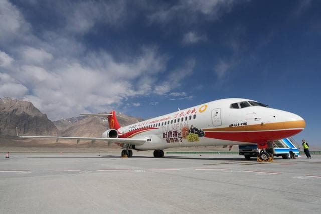 2023年6月2日,成都航空正式开启国产支线飞机进疆运营,是第一个以ARJ21国产飞机进疆的航空公司,以“进得去、稳得住、站得久”的“根据地”思维,全力以赴深耕新疆。2024年,成都航空进一步加快在疆基地和航线布局,在吐鲁番基地基础上,新增伊宁、喀什两个过夜基地,疆内过夜点达到3个。以新疆为主阵地,进中亚国际市场、进高高原机场运行,优化基地航线布局、提升效率效益发展,努力推动ARJ21飞机成为新疆支线航空市场的主力机型,把公司建设成新疆支线航空运营的主力航司,当好国产支线飞机运营和新疆“干支通、全网联”建设的排头兵和示范生。以“上高原、飞中亚、全覆盖”为目标,6月7日,ARJ21飞机的首条中亚国际航线“喀什-胡占德”首航。7月2日,首条高高原航线“喀什-塔什库尔干”开通。7月24日,首条疆内干支航线“喀什-乌鲁木齐”开航。目前,成都航空ARJ21飞机在疆运营航线39条,通达新疆在运营机场26个,基本构建起覆盖广泛、通达便捷的国产支线航空运营网络,有效提升了新疆航空覆盖性、通达性、开放性,便利广大旅客乘国产飞机游大美新疆的航空出行需求。