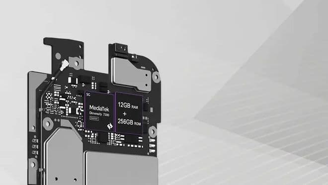 Unihertz Jelly Max搭载天玑7300移动平台,采用台积电4nm制程工艺。这颗芯片由4颗2.5GHz的A78大核与4颗A55核心组成,GPU为Mail-G615 MC2。这颗芯片可以视作是天玑7050的升级版,安兔兔跑分大约在75万分,和骁龙778G相差不大。