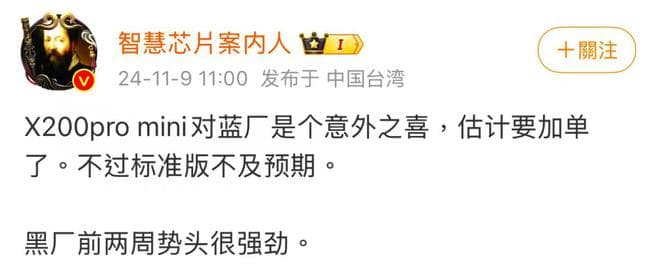 微博智慧芯片案内人此前透露,X200 Pro mini对于vivo而言是个意外之喜,估计要继续加单;OPPO Find X8的首销也比前代高出2.8倍。这恰好说明,手机市场正在回到当初那个百花齐放的时代,小屏旗舰、大屏旗舰,接下来要登场的电竞手机,各自都有坚实的受众群体。此外,像是努比亚坚持的无孔全面屏,在不断优化下,也越来越受消费者的认可。