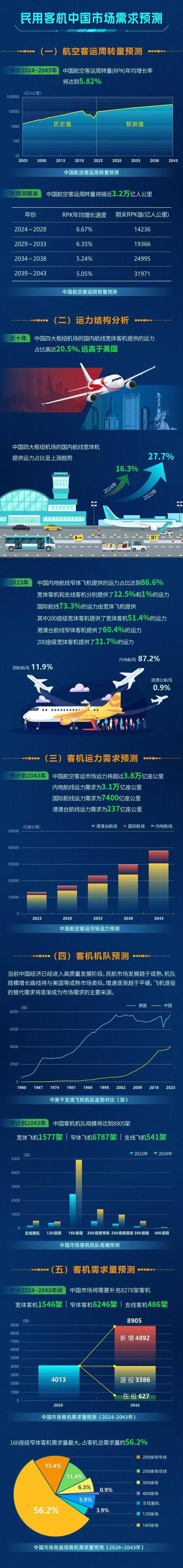 航空工业集团发布民用飞机中国市场预测 :2024到2043年需补充各型民用客机8