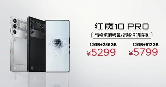 价格方面,红魔10 Pro暗夜骑士/白昼武士,12+256G售价4999元,12+512G售价5499元;红魔10 Pro氘峰透明银翼/氘峰透明暗夜,12+256G售价5299元,12+512G售价5799元。